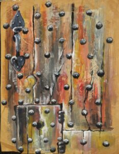 Today, using these faded fragments of buildings, we can only imagine the society which created these fashionable strongholds, but they also serve an additional purpose. This is a painting of the door by Kit Neufeld, a student in the Saturday Sketching class of the artist Peter Russell, based at the Smith. For almost 20 years, Peter Russell’s students have found inspiration in the Smith collections and their work is currently on show there.