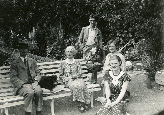 The photograph, from the University of Stirling Archives, shows a sunny day in the back garden of 21 Albert Place, Stirling. Left to right are William McLaren, his sister Jessie, his son film maker Norman McLaren, and Norman’s friends Helen Biggar and Biddy Russell.