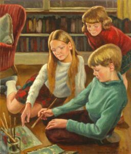 ‘The Young Artists’ is from this period of his life. For many years it hung in Gargunnock Primary School, and it is a recent gift to the Stirling Smith collections. Can any Observer reader identify who the young artists are, and what they are doing now?