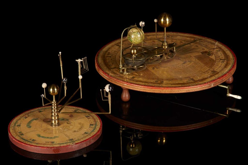 This beautifully detailed orrery was made in 1799 by William Jones of London. It comes with an equally intricate tellurium (or tellurion). To own these scientific instruments would have been the height of intellectual sophistication at the time.