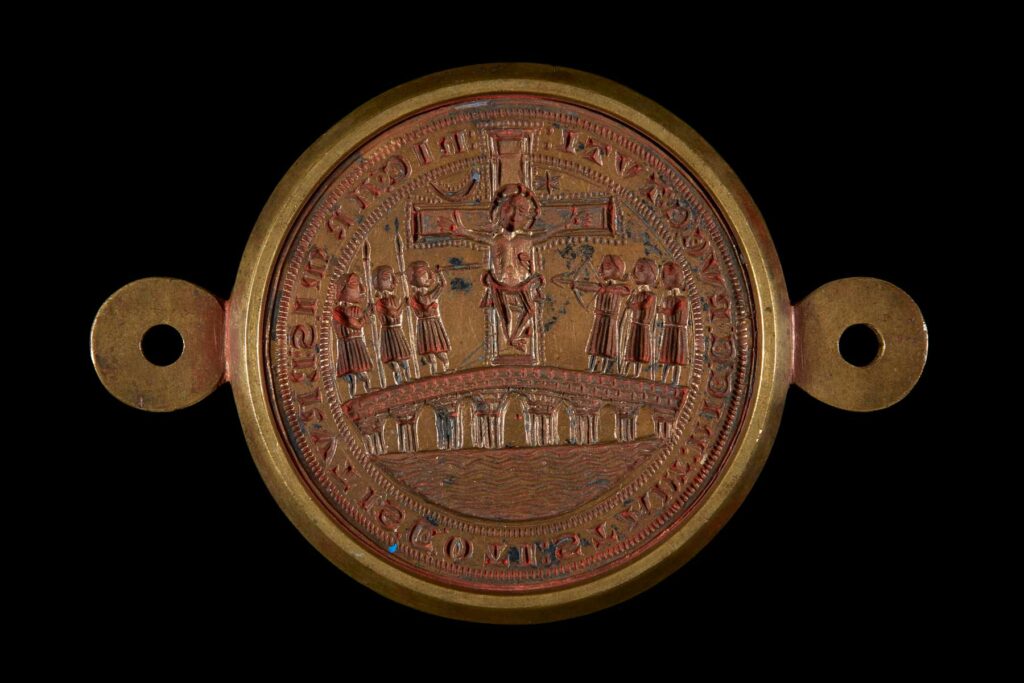 The front of the seal has an image of Stirling’s famous bridge, with Christ on the Cross in the centre and armed figures on either side. As the lowest crossing point on the River Forth for centuries, whoever held the bridge at Stirling controlled access to the north and the south – it was said that “to take Stirling is to hold Scotland.”