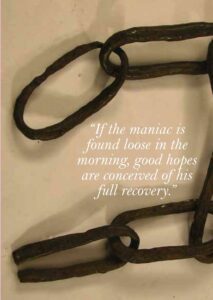 Six links of an old iron chain survive in the Stirling Smith Collections – all that is left of the chain which bound those with a mental illness at the healing pool of St.Fillan near Killin.