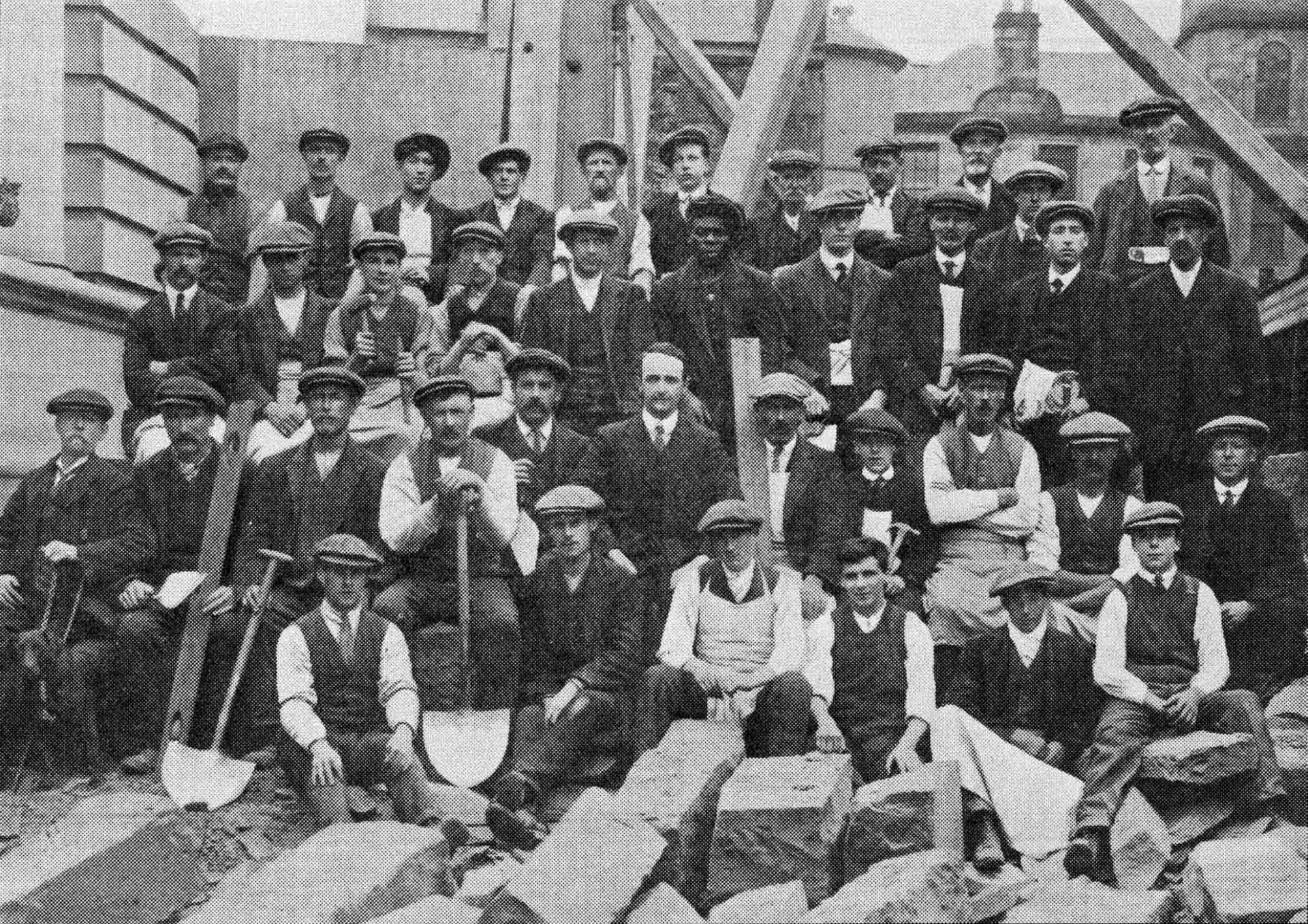 Most of the images were of buildings but shown here, from the Stirling Smith’s own collections is a photograph of some of the men who were at work on the Municipal Buildings in Corn Exchange before war was declared in 1914. All would be local men and there are some young apprentice boys. In the middle of the second back row is a Black man, unusual for Stirling at that time.