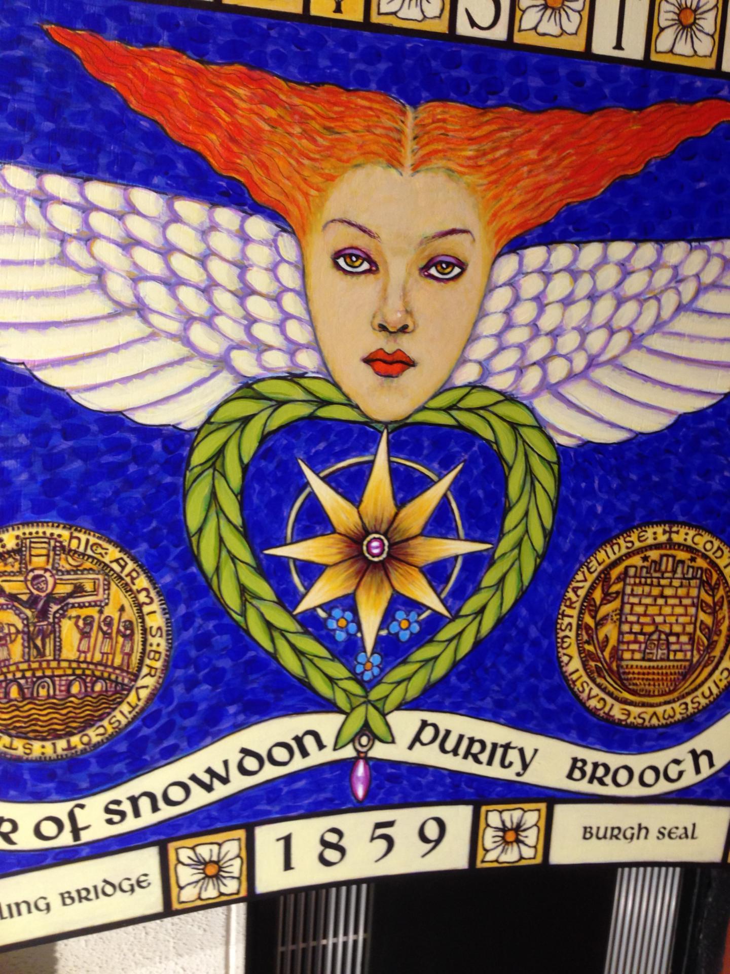 Snowdon is the ancient poetic name for Stirling. In 1859, the Star of Snowdon Purity Brooch was a piece of Stirling-inspired jewellery made for the women of the Drummond family to celebrate the inauguration of the Virgin Martyrs Monument in the new Valley Cemetery. The cemetery was created with money from the Drummonds who were successful seed merchants and agricultural machinery suppliers. From the sculptor Handyside Ritchie, Drummond commissioned marble sculptures of two women covenanters, Margaret Wilson and Margaret McLaughlan who were sentenced to death by drowning in the tidal waters of the Solway for their faith on 11 May 1685. A third girl, Margaret Wilson’s younger sister Agnes was spared because of her age.